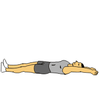 1. Deite-se de costas com braços e pernas esticados. A cabeça deve estar em posição neutra, com espaço entre o peito e o queixo.